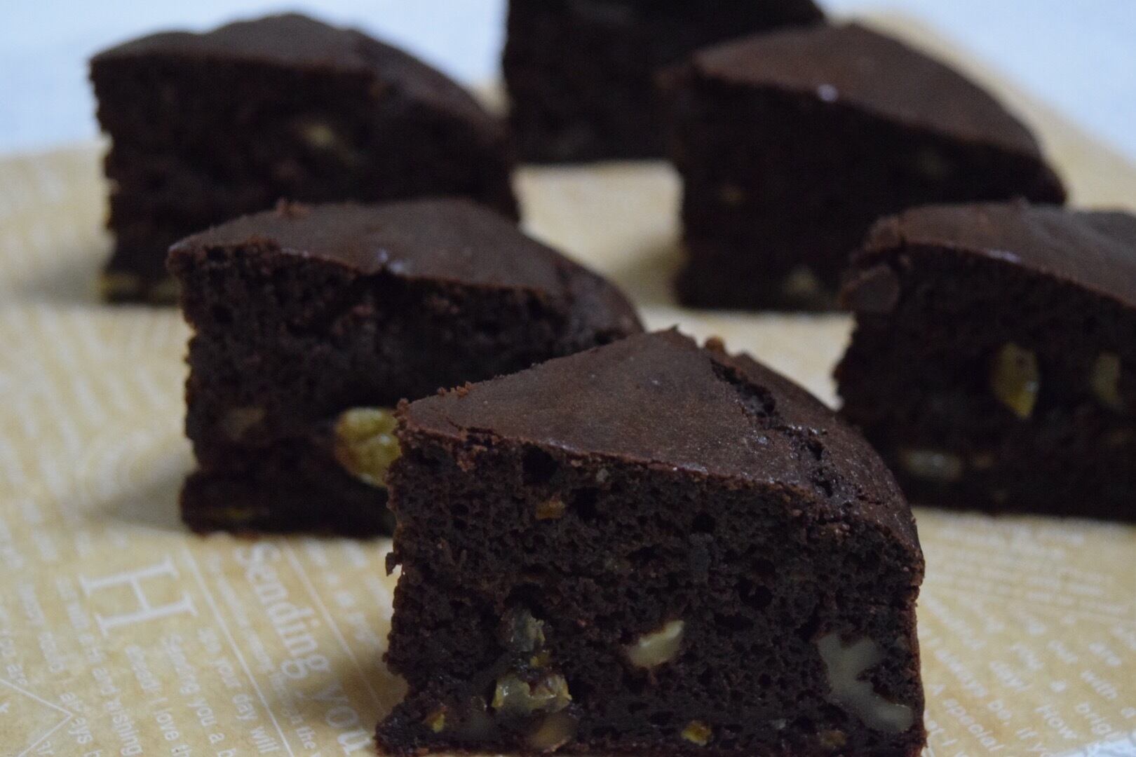 グリーンレーズン、くるみ、オーガニックチョコ、無農薬オレンジのピールがはいったしっとりブラウニー!