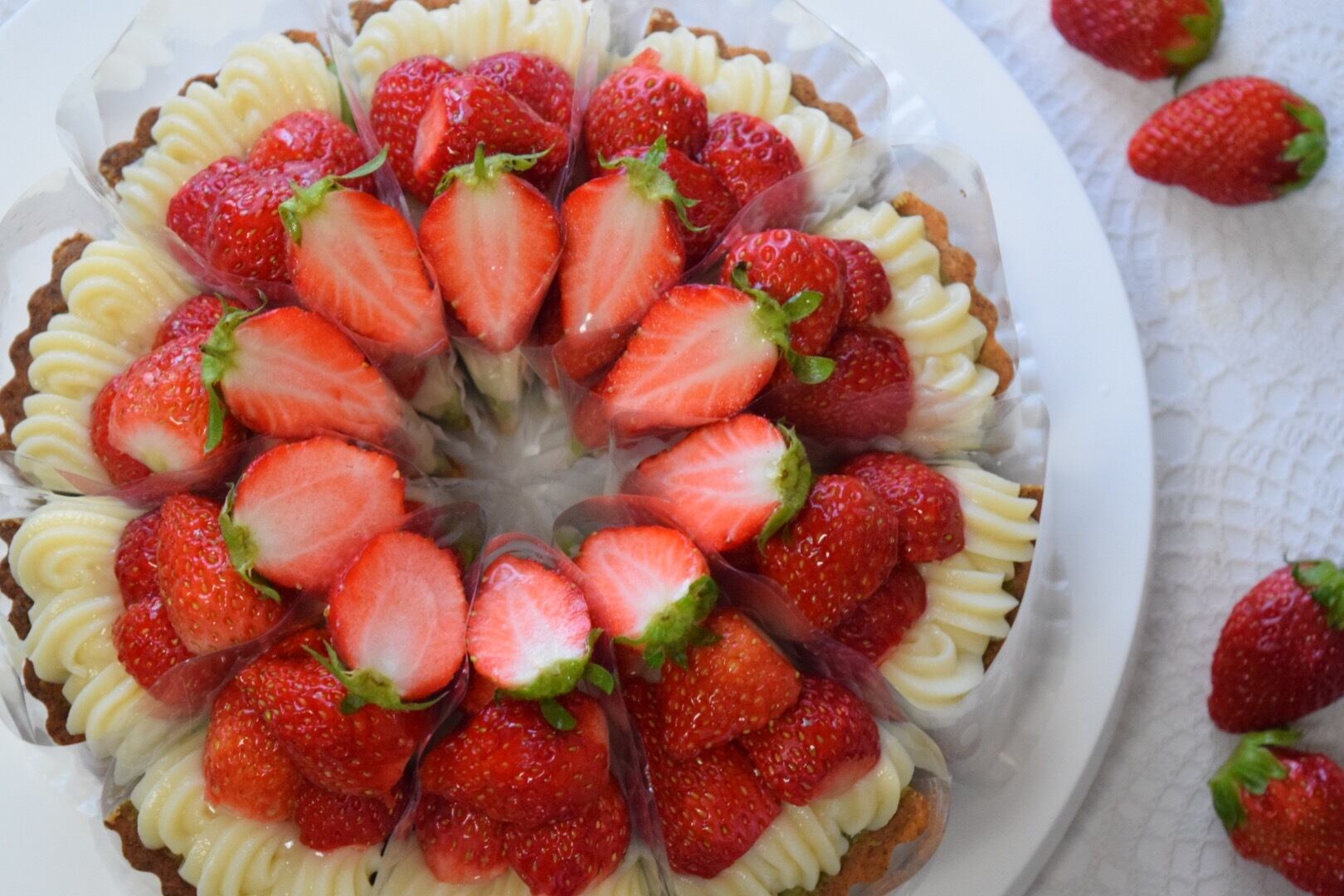たっすりのカスタードにフレッシュな減農薬いちごをのせて
